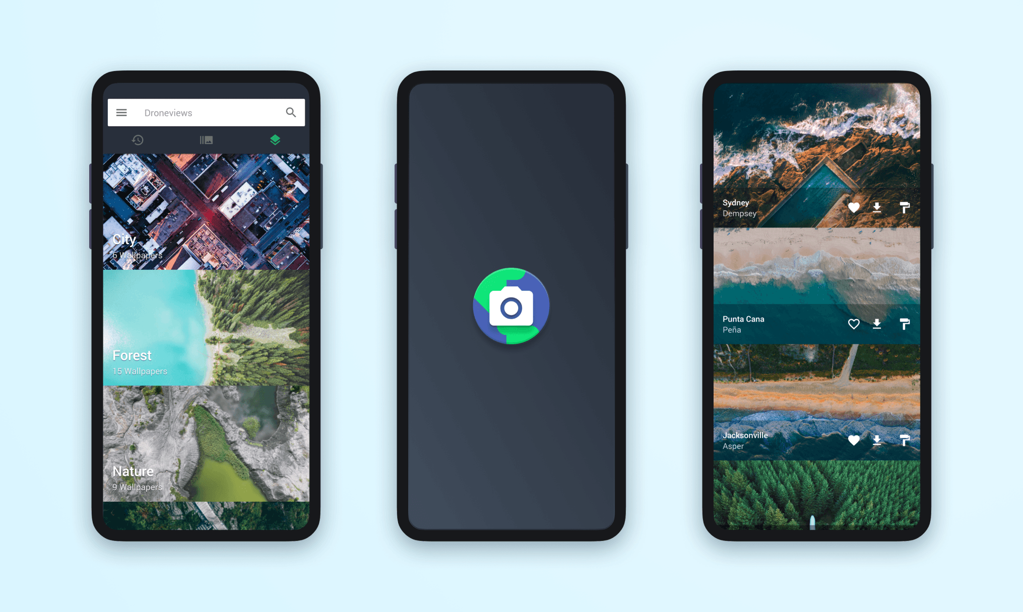 Featuring a curated library of over 100 wallpapers sourced from NASA, Google Earth, and Unsplash, Droneviews presents users with a visually rich experience, complete with smooth Material Design animations and practical, user-centered features like offline saving, fast caching, and integrated wallpaper setting.