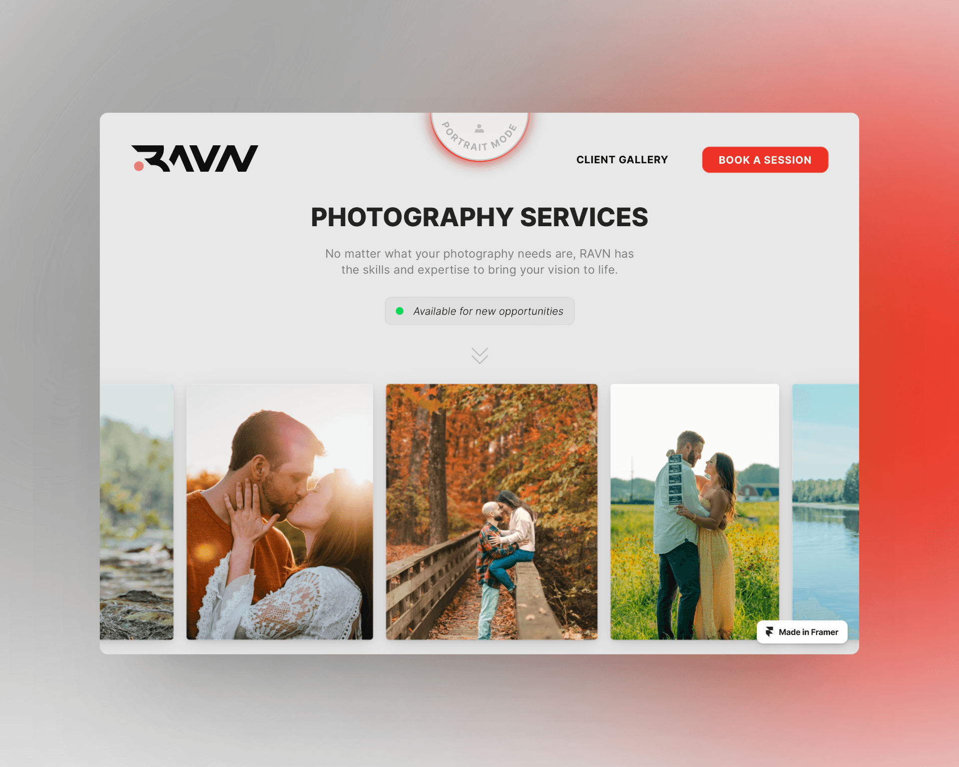 RAVN Photos is a dynamic photography website designed for two distinct photography styles: Sport and Portrait. The website features two unique home pages, each specifically crafted to highlight the respective photography styles. The Sport mode home page is bold and action-oriented, capturing the excitement and energy of sports photography. In contrast, the Family/Portrait mode home page exudes warmth and intimacy, reflecting the timeless and personal nature of family and portrait photography.