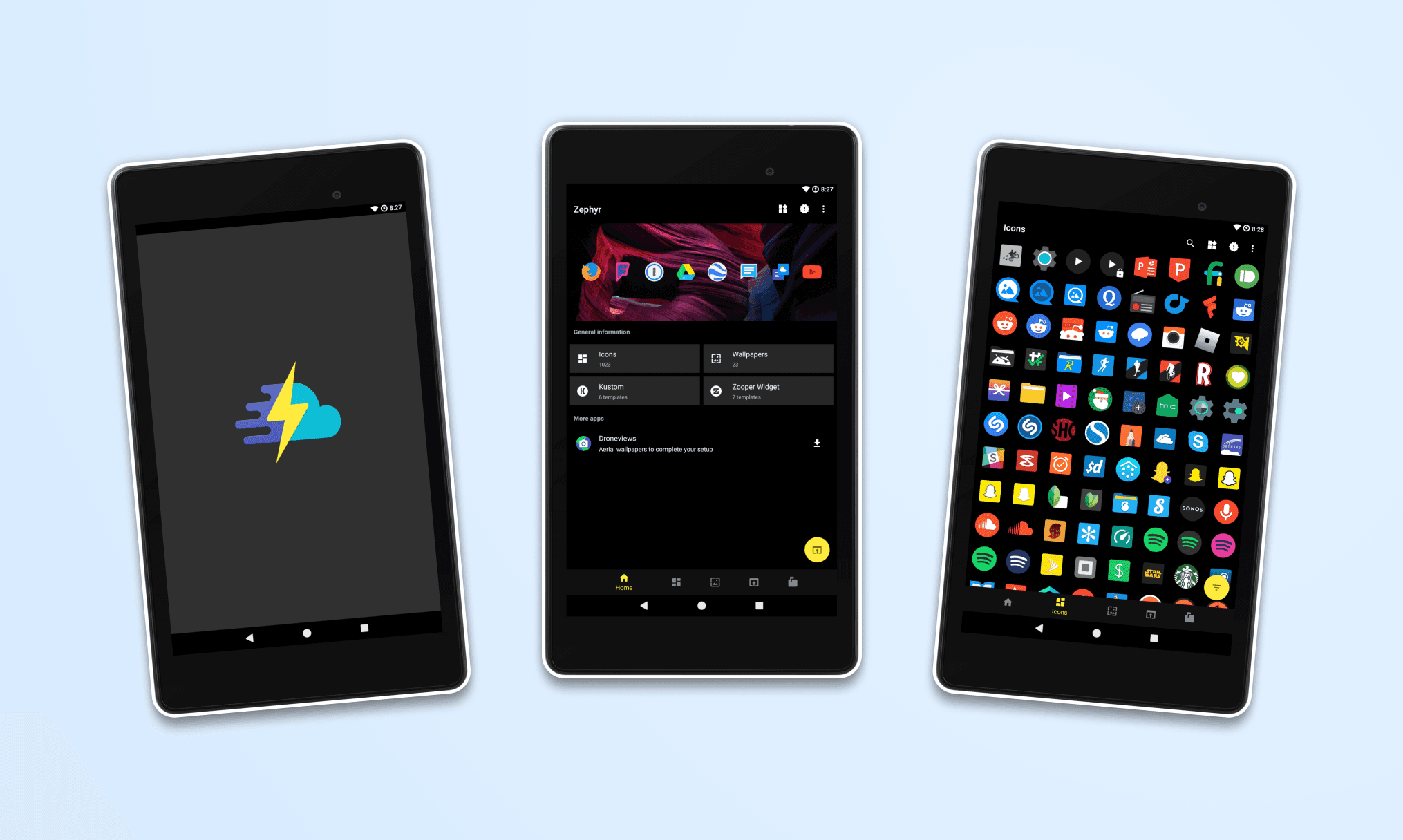 Zephyr is a material-inspired icon pack for Android. Crafted with a rich, yet professional color palette, this icon pack brings consistency and enjoyable iconography to custom Android home screens. By using drop shadows exclusively, a layered effect is created, isolating each and every detail. In addition to 1000+ custom app icons, Zephyr includes a beautiful set of wallpapers to complete your home screen setup.